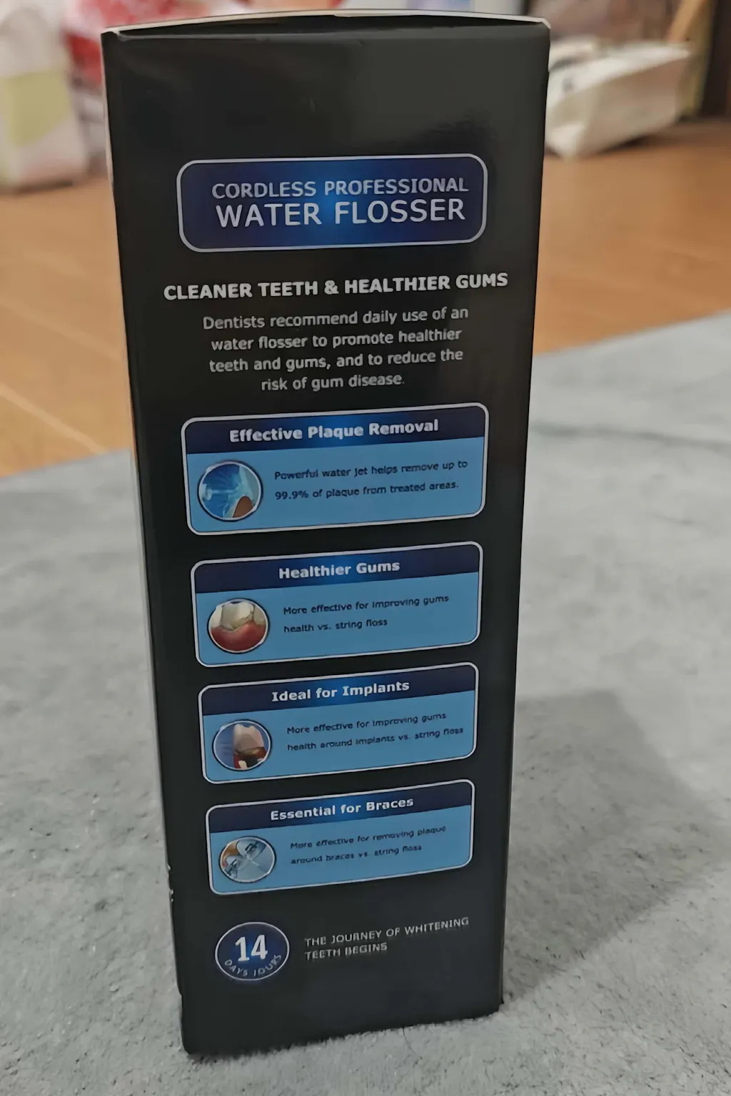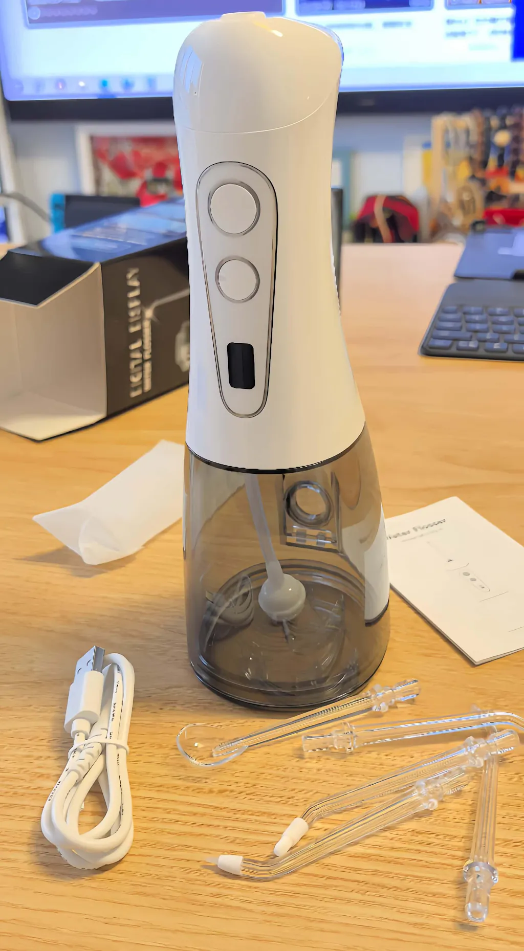 This Family Water Flosser is great for cleaning teeth effectively. The water pressure is perfect, and it’s easy to use. My kids love it! The only issue is that the motor is a bit loud when it’s running, which makes it a little harder to use early in the morning. Still, it’s a great product and does its job well.