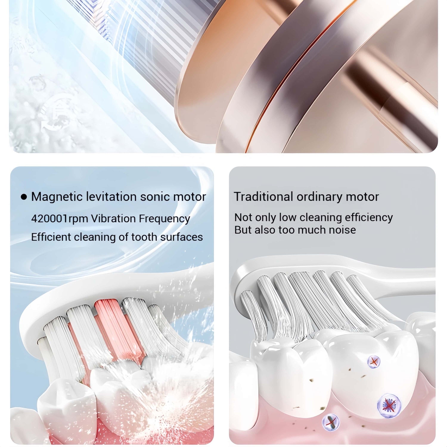 High-frequency sonic vibration, efficient cleaning of tooth surface.