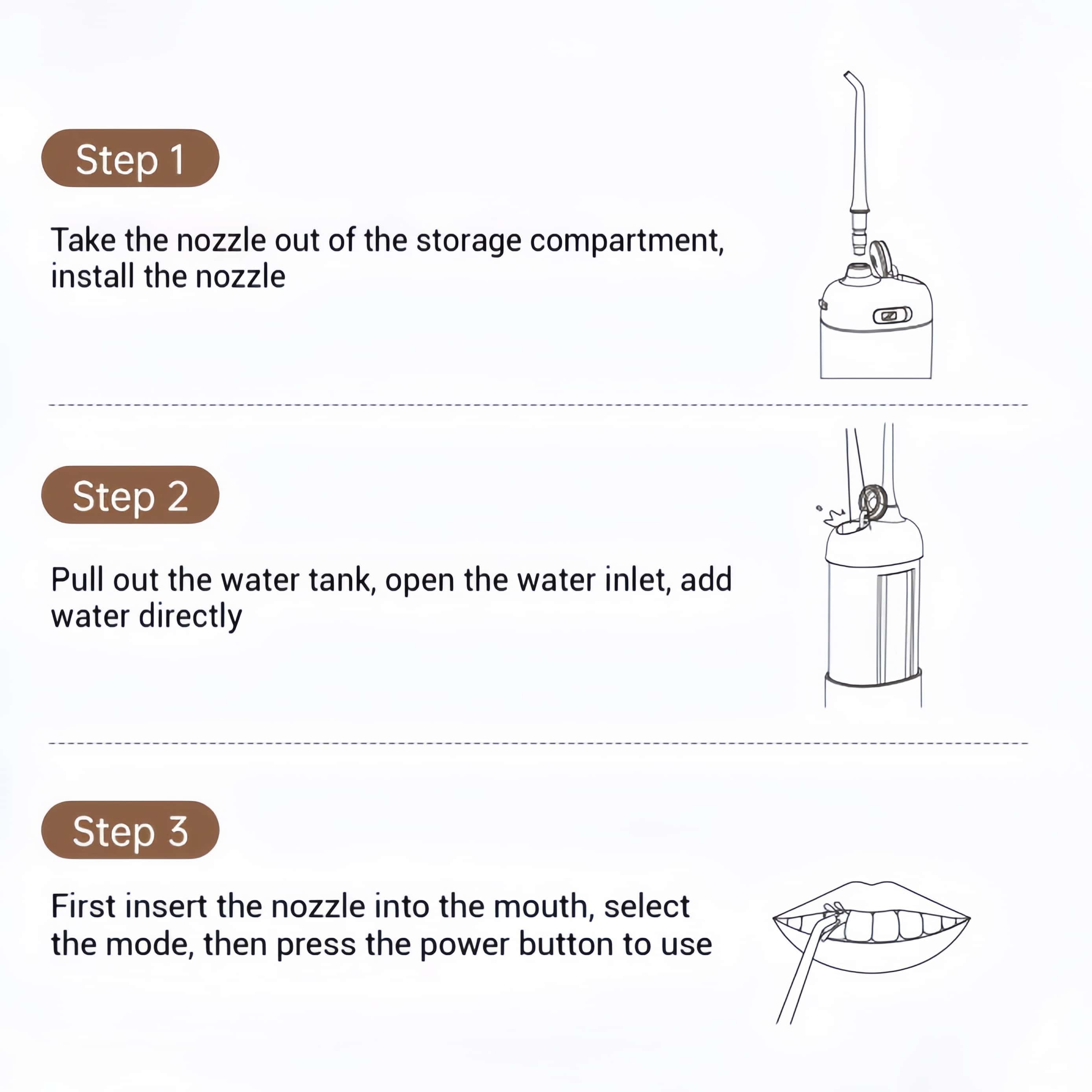 •Nozzle: Remove the nozzle by pressing the release button. Clean it with water and a cloth after each use. Replace the nozzle every 3 months, or immediately if the tip is deformed.