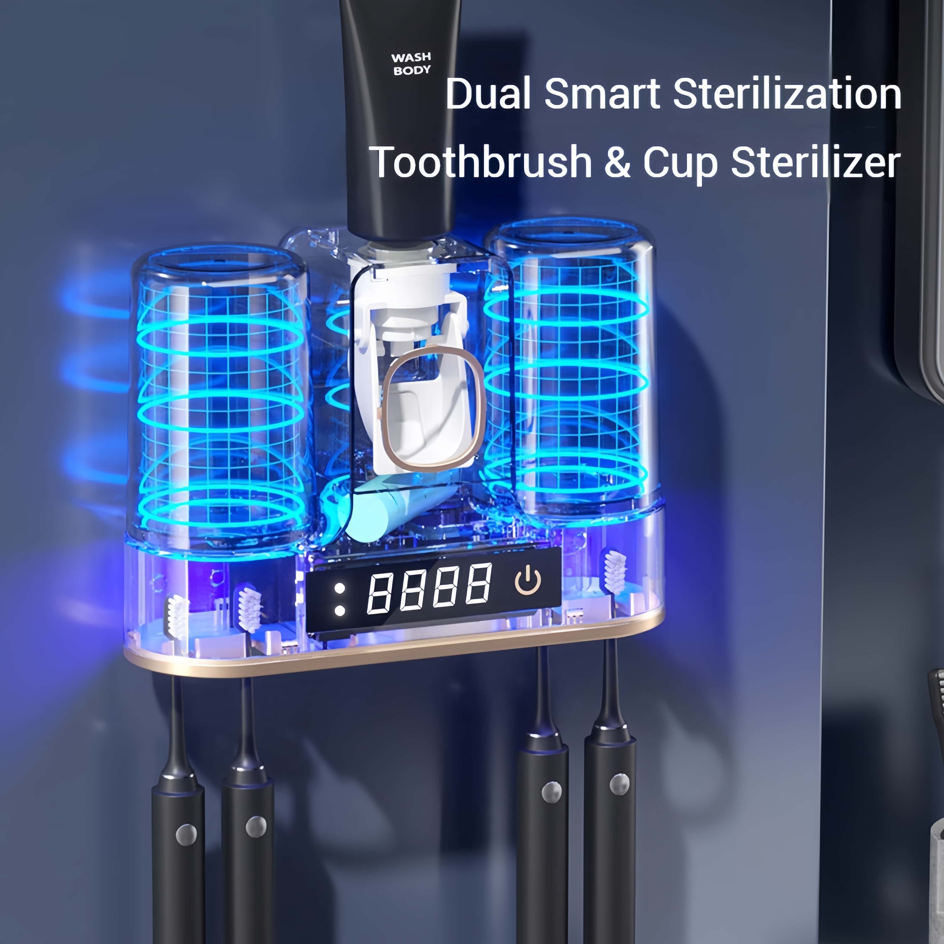 Double intelligent disinfection, toothbrush and cup disinfected at the same time.