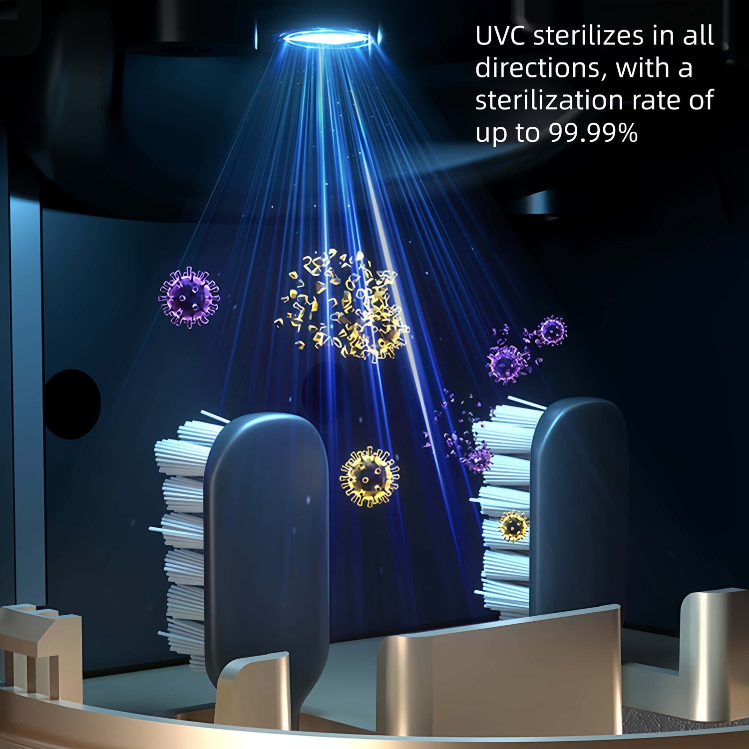 UVC sterilizes in all directions, with a sterilization rate of up to 99.99%.